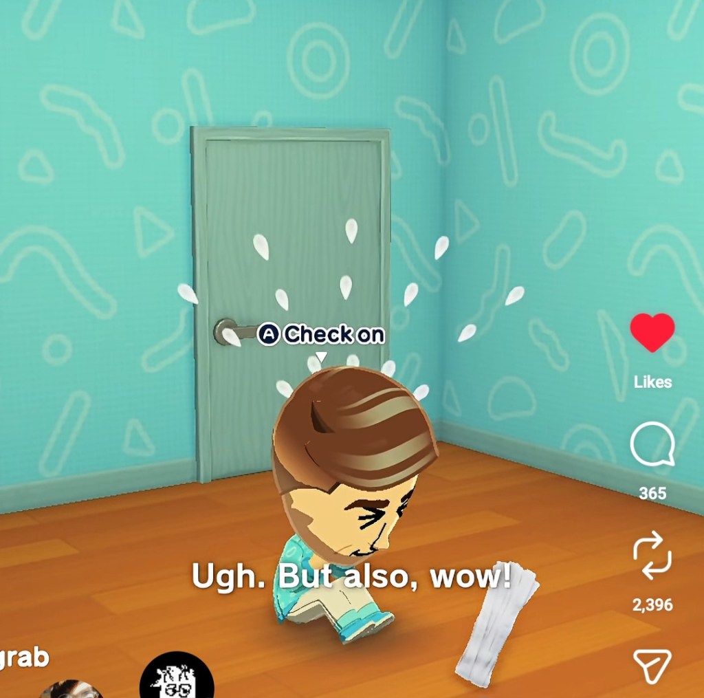 Two danny related things – there have been some reels going semi viral of danny as this mii ..I have to confess, very few of my drawings have achieved this level of likeness, and it’s upsetting. His obsessive devotion to his weak-looking elastic band is unconscionabley cute.