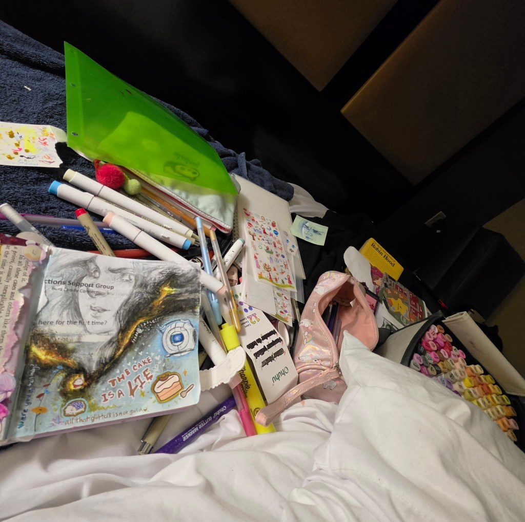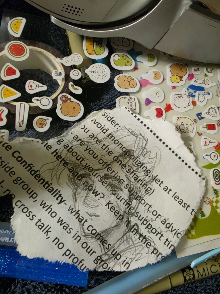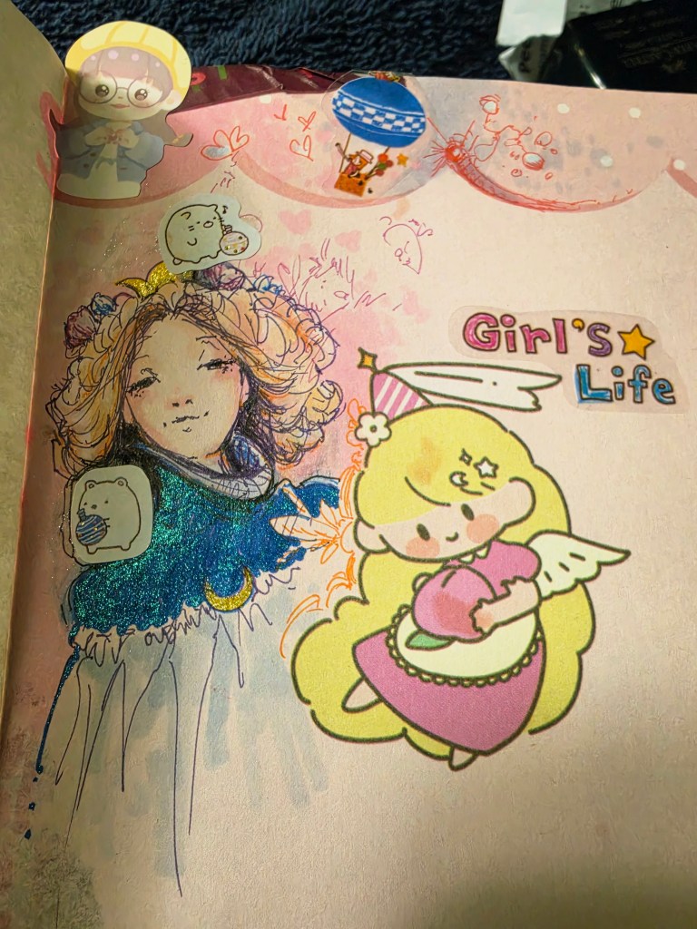 I’ve had the urge to do some scrapbooking in my sketchbook – this way if the marker shows through the thin paper, I can add a collage element 🤓.