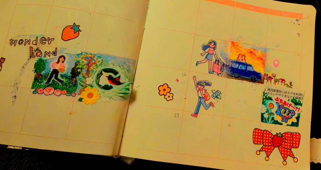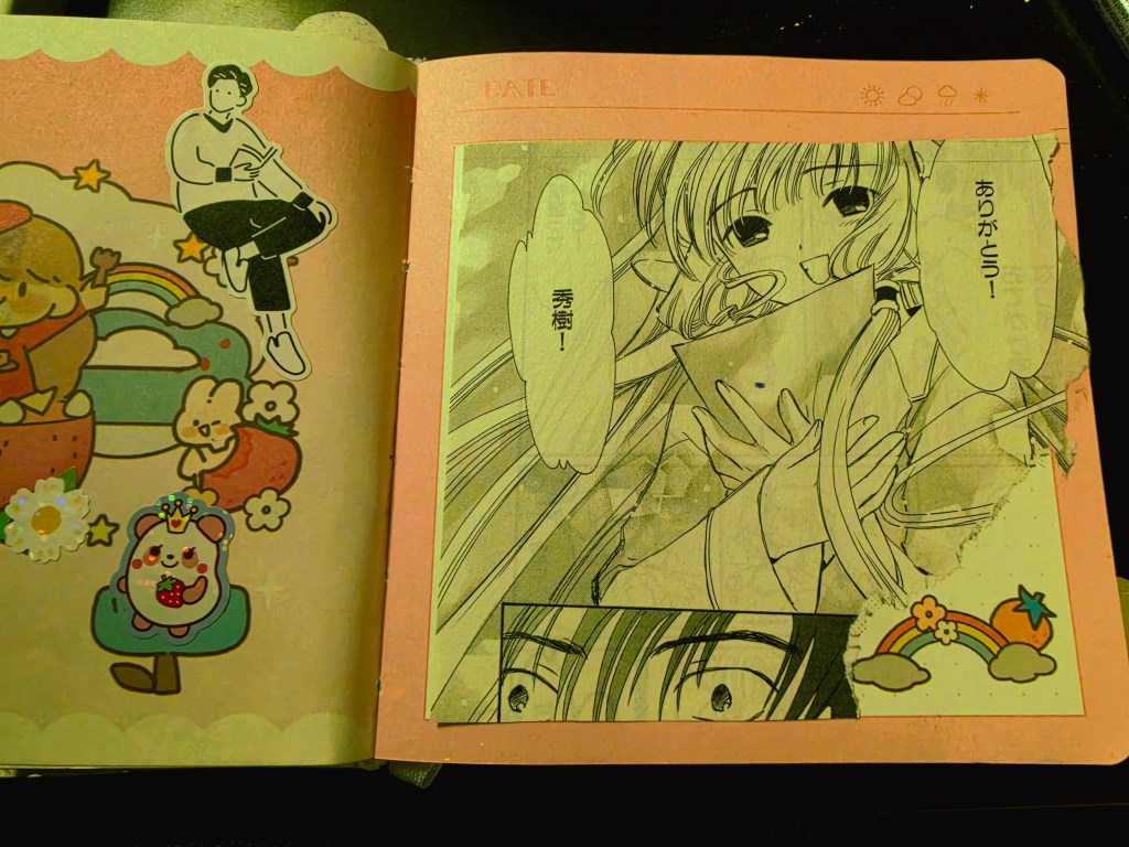 A few unfinished sketch pages – and yes, I am cutting parts out of the book I just bought T_T. Too be truthful, I bought it as equal parts nostalgic keepsake and scrapbook material.